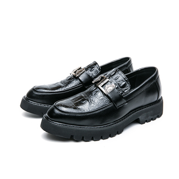Sapatos Sociais Casuais Masculinos de Couro PU Estilo Confortável Respirável com Cabedal em Relevo para Casamento e Condução – Tendência Outono